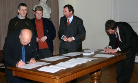 Ik bedank ook alle andere aanwezige en vertegenwoordigde stichtende leden, die allen vanuit hun interesse- of beroepssfeer, de stichting van onze nieuwe vzw kracht bijzetten. Dat we hier vandaag samenzijn, is te danken aan de enthousiaste reacties van vele mensen. De proefballonnetjes die ik in september 2003 liet opstijgen, werden niet doorprikt. Op 26 november 2003 kwamen we een eerste keer samen, en vormden we de Werkgroep Servais 2007. We kregen de broodnodige steun van de Stad Halle en van heel wat instanties. De voorbije vijftien maanden hebben we heel wat vergaderd en overlegd; we raakten steeds meer overtuigd van de waarde van ons initiatief.